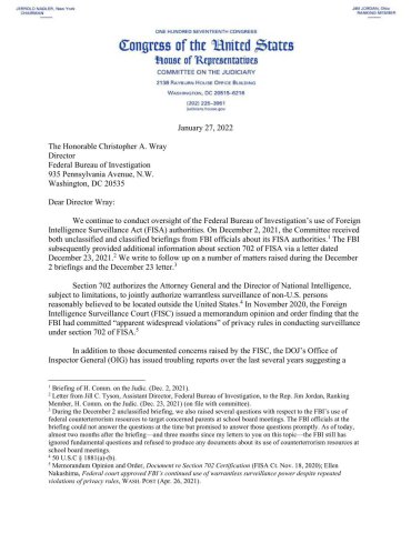 Since at least December 2, 2021, the USA House Committee on the Judiciary has known about persistent widespread abuses of its so-called “702 FISA PRISM ACT” by the Federal Bureau of Investigation. That reality cannot be denied. Notwithstanding the same, the widespread abuses by the Federal Bureau of Investigation persist.