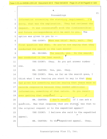 This carousel shows select pages of the Freedom of Information Act Request Hearing Held more than two (2) years ago, which was two (2) years too late, on its face illustrating Obstruction of Justice by the Department of Justice and the Court. Clearly, the Department of Justice is above the law.