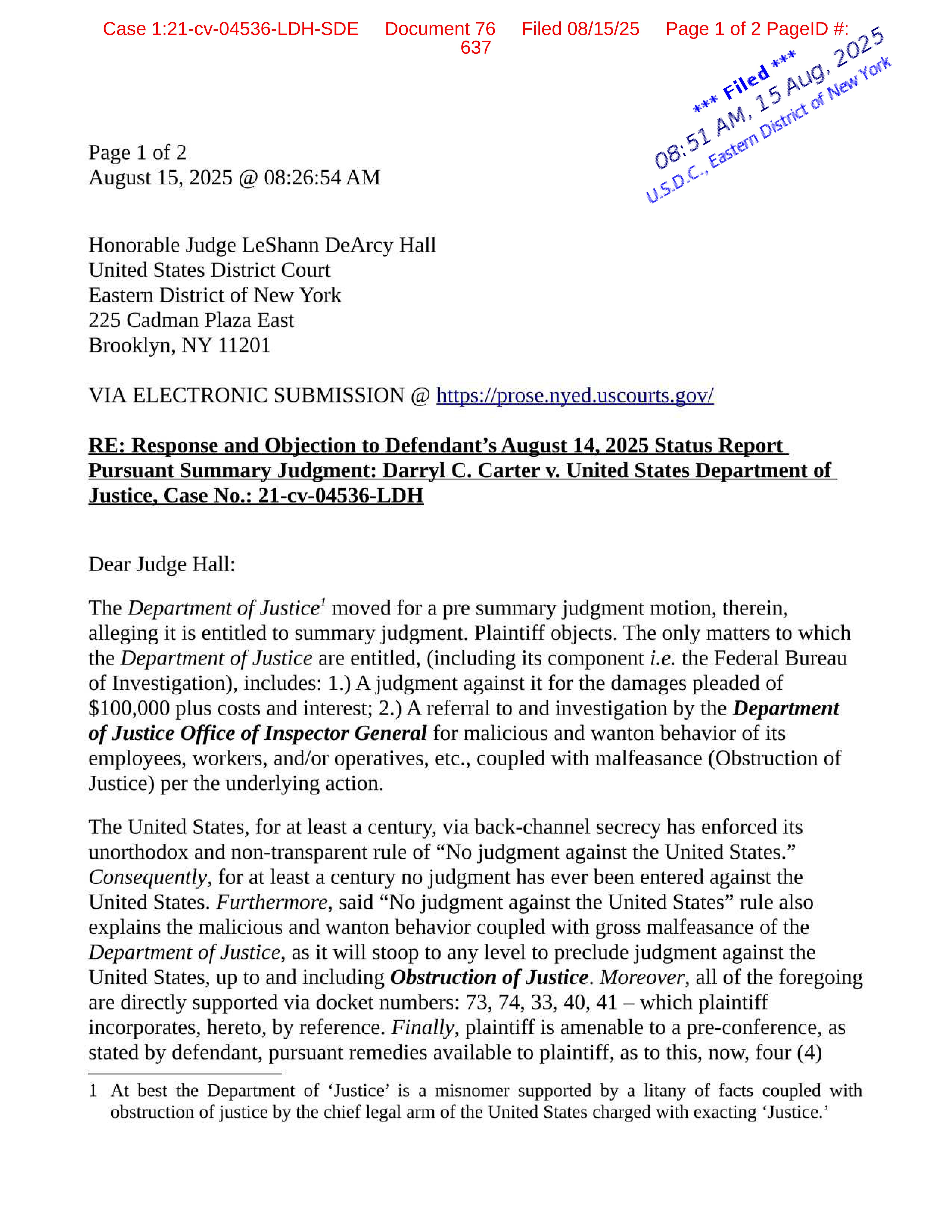 The Freedom of Information Act (FOIA) statue is a straightforward statute with respect to the underlying lawsuit at hand, which now has entered its fourth year, involving verified confirmed bad faith, a criminal cover up, extortion, blackmail, threats of bodily harm -- all by the USA intelligence agencies. In particular, the FBI. Such bad faith and abuse of power gives rise to active human rights claim filings.